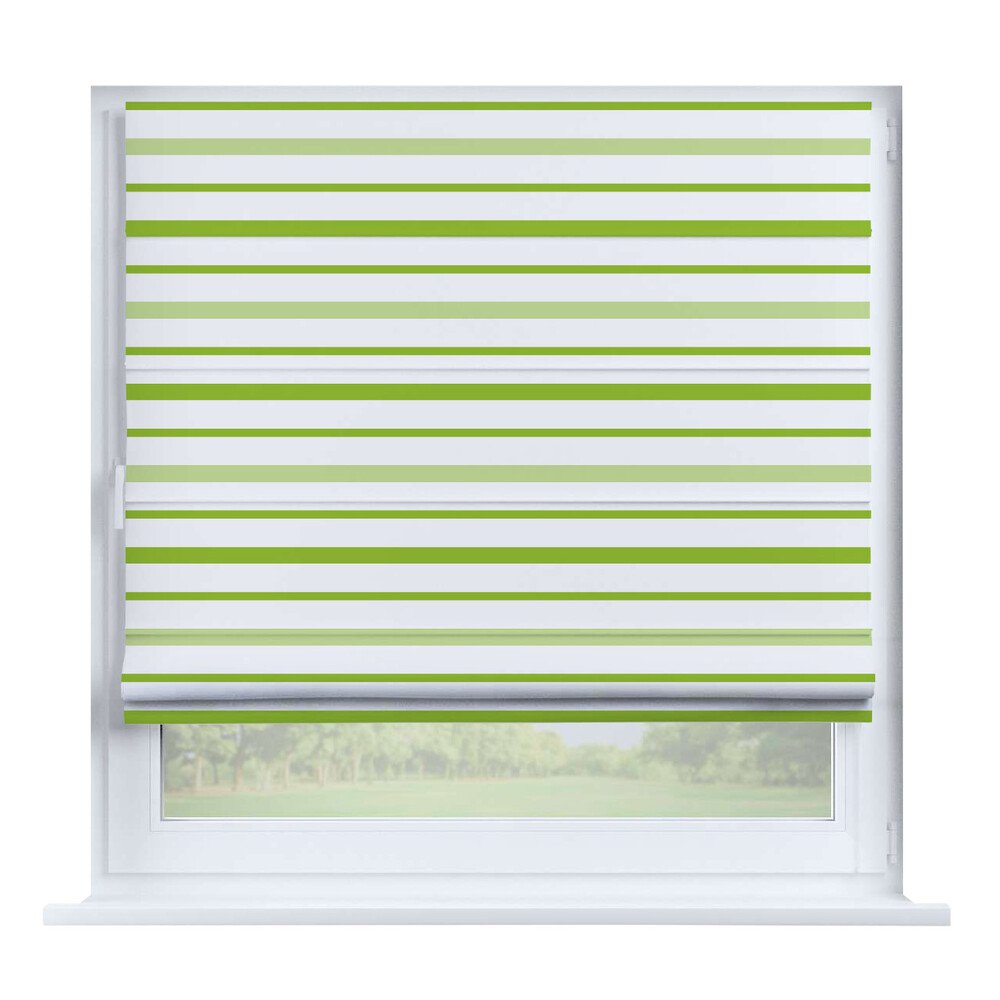 - Если нужна регулировка освещенности в течение суток, то лучше выбрать римскую штору день-ночь блэкаут с тюлем. Путем регулировки высоты двух полотен можно настраивать количество проникающего в помещение света.